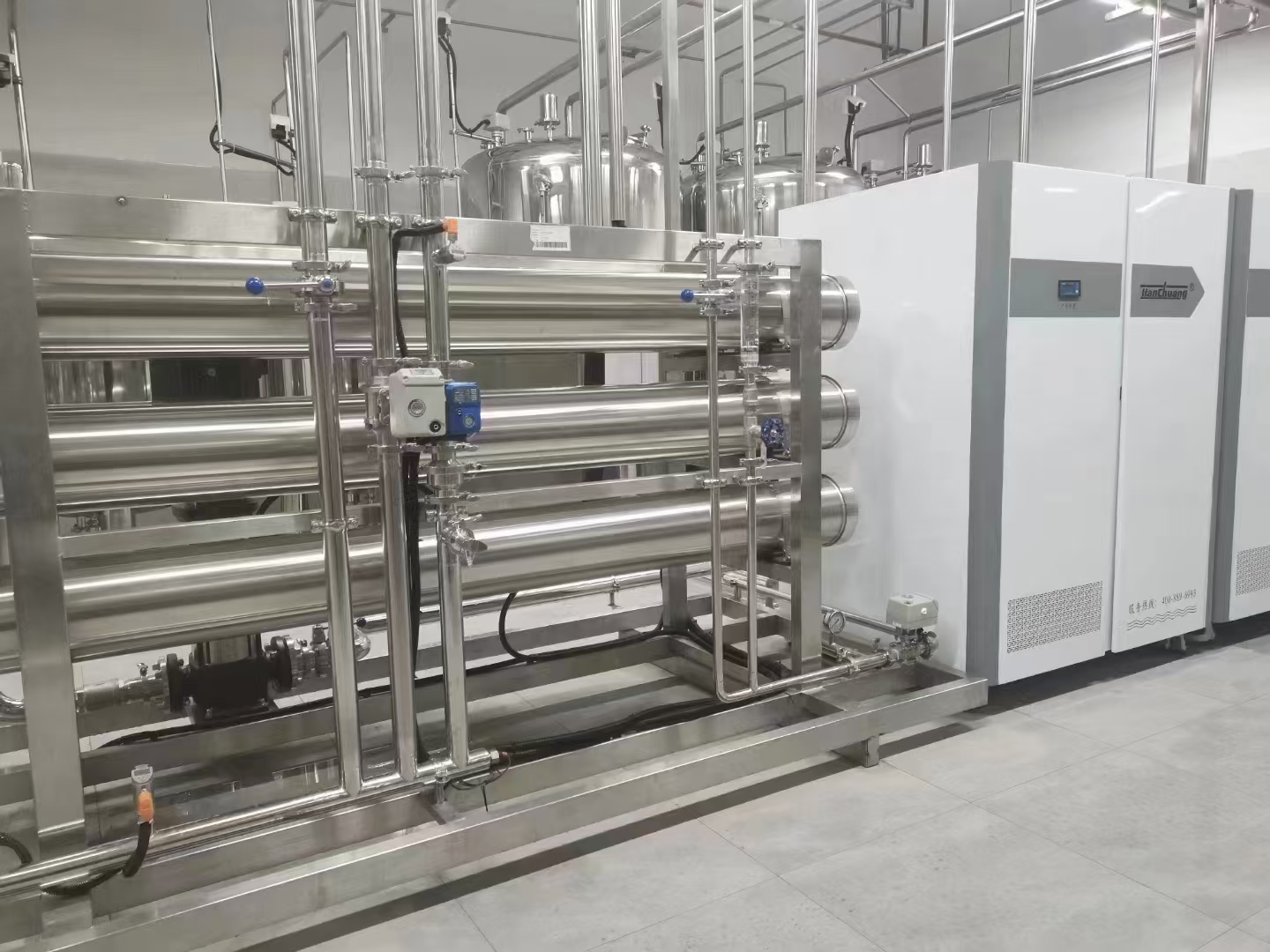 EDI系統:在RO之(zhi)后(hou)配(pei)備EDI(電去離(li)(li)子)系(xi)統(tong),進(jin)一(yi)步去除水(shui)(shui)中的微量離(li)(li)子和溶解物,提(ti)供接(jie)近或達到超(chao)純(chun)水(shui)(shui)標準的水(shui)(shui)質。這(zhe)對于(yu)生物醫藥行業來說至關重要,因為水(shui)(shui)的純(chun)度直接(jie)影響到產品(pin)的質量和安(an)全。