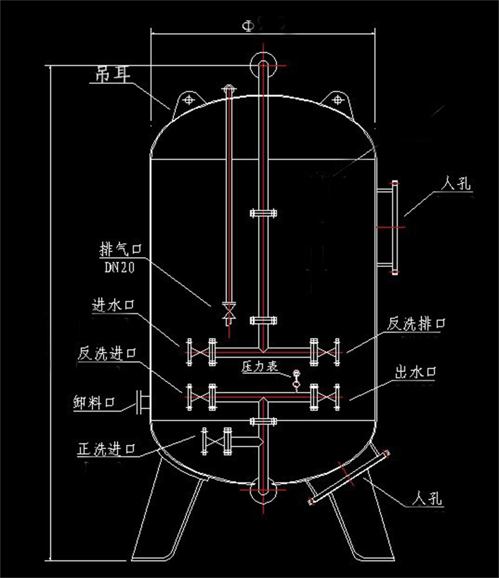 多介質(zhi)(zhi)(zhi)(zhi)(zhi)過濾器是(shi)水(shui)(shui)質(zhi)(zhi)(zhi)(zhi)(zhi)預處理部分的(de)主(zhu)要設(she)(she)備(bei),根(gen)據(ju)水(shui)(shui)質(zhi)(zhi)(zhi)(zhi)(zhi)的(de)不同采用(yong)相應濾料(liao)的(de)設(she)(she)計方案。原(yuan)水(shui)(shui)以(yi)較低(di)流速(su)通過石英(ying)砂(sha)(sha)和(he)無(wu)煙煤等(deng)濾料(liao),能高效去除(chu)水(shui)(shui)體中的(de)膠體、懸浮(fu)物、腐(fu)殖質(zhi)(zhi)(zhi)(zhi)(zhi)、泥沙、粘土等(deng)雜質(zhi)(zhi)(zhi)(zhi)(zhi),降(jiang)低(di)水(shui)(shui)的(de)濁度,達到(dao)水(shui)(shui)質(zhi)(zhi)(zhi)(zhi)(zhi)澄清的(de)目的(de)。在多介質(zhi)(zhi)(zhi)(zhi)(zhi)過濾器中加入錳砂(sha)(sha)與射流器設(she)(she)備(bei)配套使用(yong),由于(yu)Mno2在反(fan)應中起(qi)催化(hua)作用(yong)有利于(yu)二(er)價(jia)鐵離子(zi)氧化(hua)生成(cheng)三價(jia)鐵離子(zi),達到(dao)去除(chu)鐵錳的(de)目的(de)。設(she)(she)備(bei)濾料(liao)為精制石英(ying)砂(sha)(sha)、無(wu)煙煤和(he)錳砂(sha)(sha),主(zhu)要材質(zhi)(zhi)(zhi)(zhi)(zhi)為鋼(gang)防(fang)腐(fu)和(he)不銹鋼(gang)用(yong)于(yu)給水(shui)(shui)處理出濁:反(fan)滲透、離子(zi)交換(huan)軟化(hua)除(chu)鹽(yan)系統(tong)的(de)前級預處理地表(biao)水(shui)(shui)和(he)地下水(shui)(shui)除(chu)泥沙。
